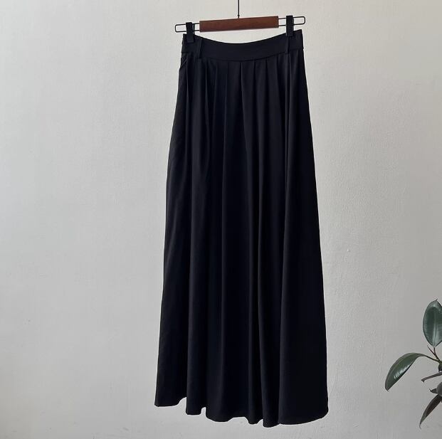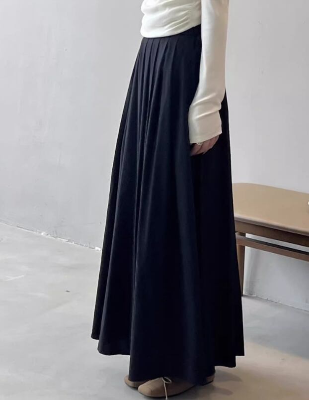 スカート ボトムス レディース プリーツスカート 秋 ひざ下 ロング丈 アンクル丈 マキシ丈 フレア Aライン 落ち感 ふっくら ハリ感 カラバリあり ブラック 黒 カーキグリーン 無地 M L 旅行 外出 体型カバー 楽ちん 美脚 脚長 華奢見え 細見え 高見え 着回し 合わせやすい 使いやすい 履きやすい 食事会 ベーシック シンプル ナチュラル カジュアル きれいめ モダン おしゃれ こなれ感 抜け感 大人可愛い 上質 爽やか 20代 30代 40代 50代 休日 デート お出かけ