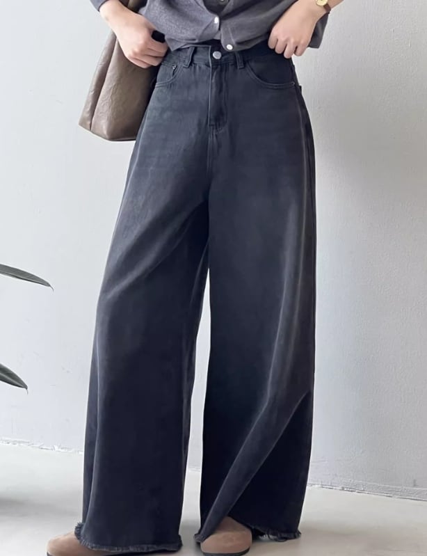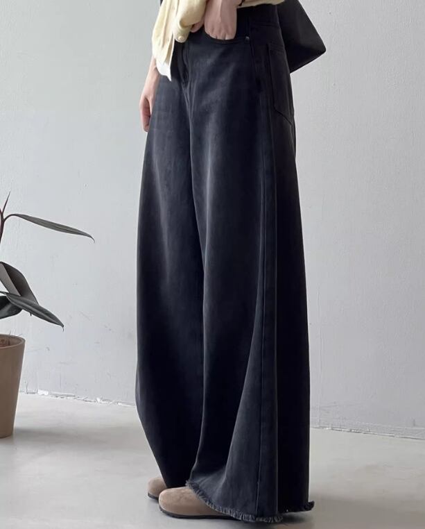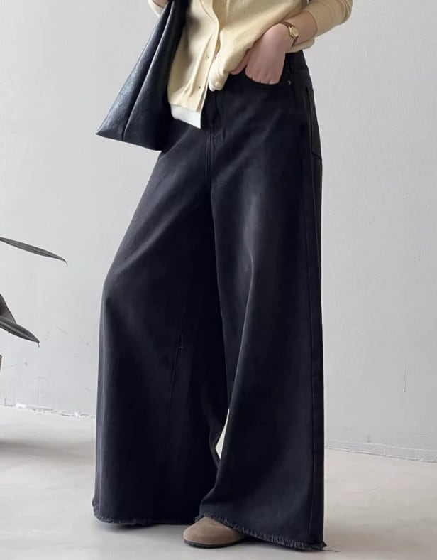 ボリューム感のあるワイドシルエットが特徴で、裾は切りっぱなしのデザイン。