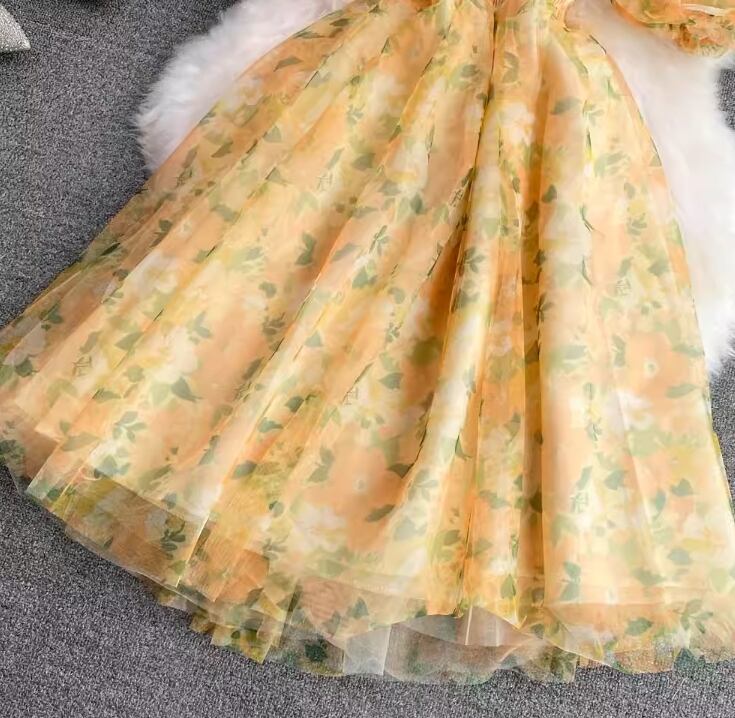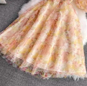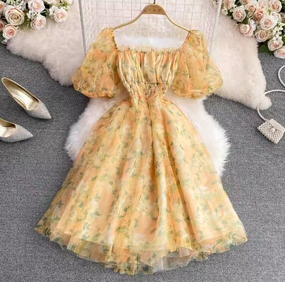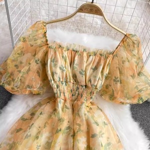 ワンピース ドレス レディース ワンピドレス フレアワンピース 夏 ミディアム丈 半袖 パフスリーブ スクエアネック フレア Aライン ハイウエスト シフォン ふわふわ シアー カラバリあり ブラック 黒 グリーン オレンジ イエロー 黄色 総柄 花柄 フラワー 小花柄 フリーサイズ 薄手 パーティー イベント 体型カバー 1枚で決まる メンズウケ 涼しい かわいい ガーリー キュート エレガント きれいめ フェミニン クラシカル おしゃれ こなれ感 抜け感 大人可愛い 華やか 10代 20代 デート