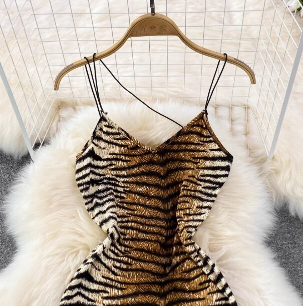 インパクトのあるアニマル柄が魅力のサスペンダースカートです。