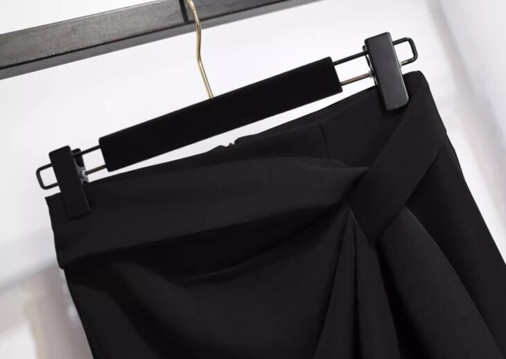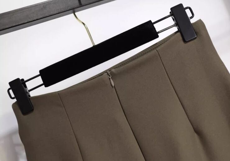 ストレートシルエットにスリットデザインが華やかさをプラスし、ハイウエストが脚長効果を引き出します。