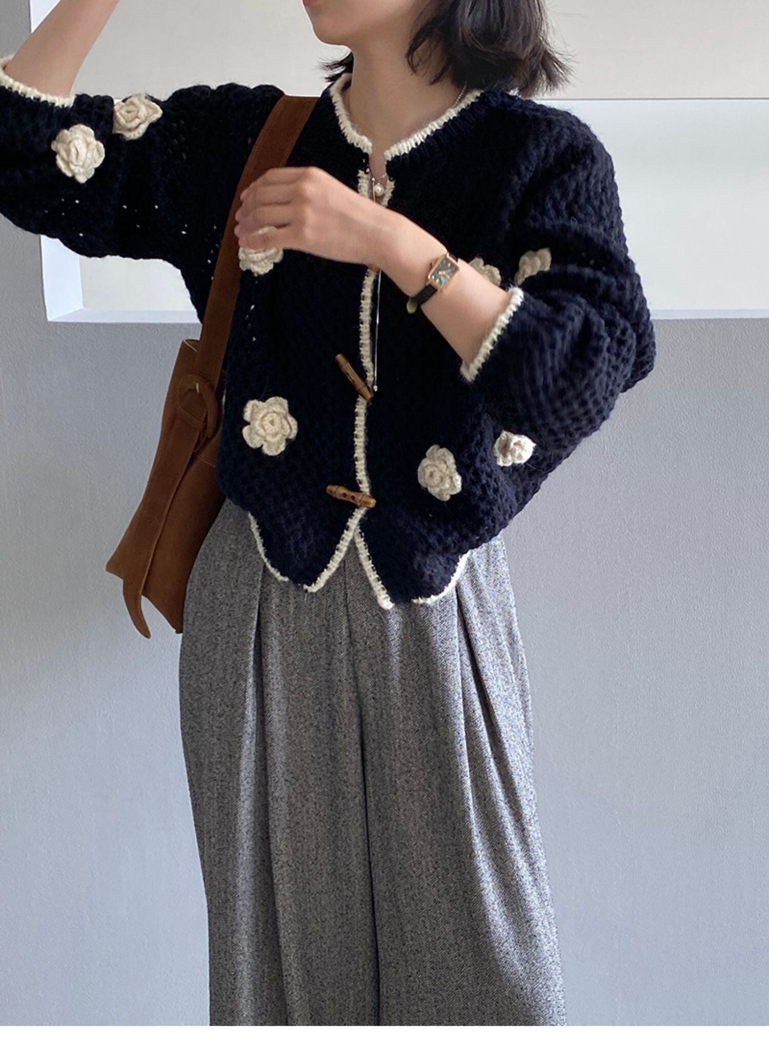 カーディガン トップス レディース 個性的 秋 冬 普通丈トップス 長袖 クルーネック 丸首 襟なし 前開き 編み込み 立体的 カラバリあり ブラック グレー オフホワイト 花柄 フラワー フリーサイズ 普段使い 日常使い 楽ちん 若見え 定番 着回し デイリー 合わせやすい 目立つ 人気 女子ウケ 人とかぶらない モテ カジュアル かわいい ガーリー キュート ラブリー ラフ おしゃれ こなれ感 存在感 主役級 好感度 10代 20代 女子会 デート お出かけ インスタ映え SNS 映え 写真 映え