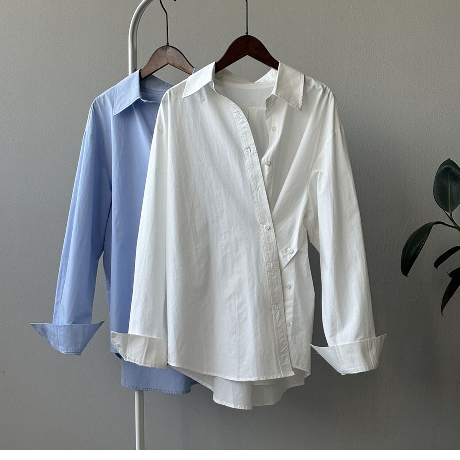 トップス レディース シャツ ブラウス 白シャツ 白トップス 個性的 春 夏 長丈トップス 長袖 襟付き BIGシルエット 前開き ホワイト ライトブルー 無地 M L ゆったり 体型カバー 1枚で決まる スニーカーコーデ 普段使い 日常使い 楽ちん 高見え 格上げ 着回し 合わせやすい 人とかぶらない 使いやすい モテ ベーシック シンプル ナチュラル カジュアル ラフ おしゃれ こなれ感 存在感 主役級 上品 爽やか 好感度 20代 30代 40代 お出かけ インスタ映え SNS 映え