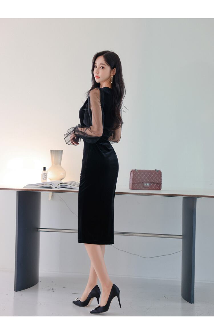 シアー袖で魅せる、主役級エレガントなブラックワンピドレス。