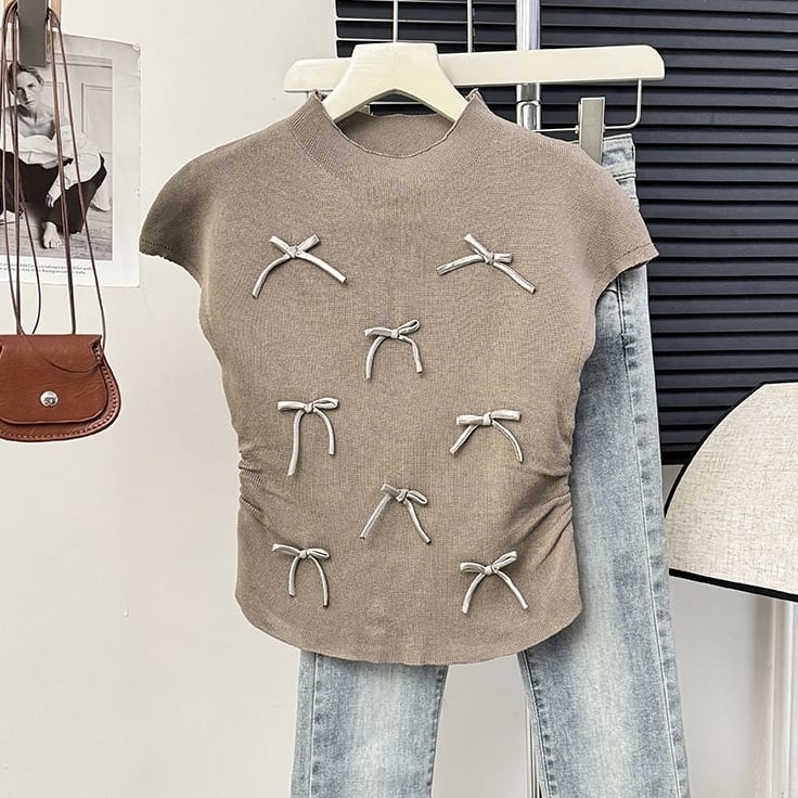 リボンを散りばめたガーリーで上品なサマーニットです。