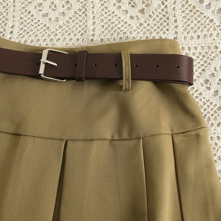 便利なスクエアバックルベルト付きの、大人かわいい印象を与えるボックスプリーツスカートの登場です!春、秋、冬と、シーズンを問わず楽しめるミニ丈ひざ上セミフレアデザインが特徴。重ね着もしやすく、体型カバーも叶うので、様々なシーンで活躍します。カジュアルな普段使いから、女子会、お出かけまで幅広くマッチします。着回しがきくベーシックなアイテムですが、シンプルでナチュラルな雰囲気が魅力的!さらに、可愛いガーリー感やエレガントさも併せ持ち、どんなスタイルにも合わせやすいアイテムです。