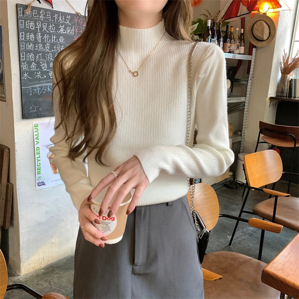 トップス ニット セーター 春 秋 冬 長袖 ハイネック ブラック ホワイト S M L XL LL バイト イベント リゾート 旅行 高原 ホテル ガーデン ライブ カラオケ 外遊び 外出 普段使い 日常使い 美脚 脚長 華奢見え 細見え 着痩せ 効果 着回し デイリー スタイルアップ 韓国 オルチャン シンプル カジュアル かわいい ガーリー キュート ラブリー エレガント きれいめ フェミニン クラシック クール おしゃれ こなれ感 存在感 主役級 女っぽ 上品 大人可愛い 10代 20代