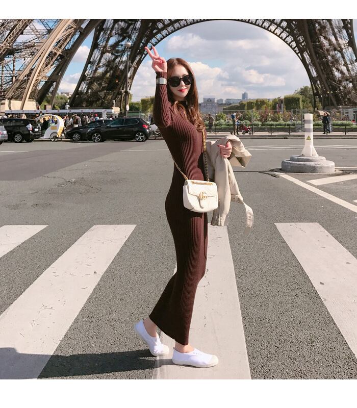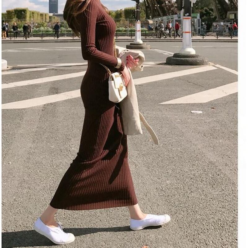 タイト ワンピース レディース ニット 秋 冬 ロング丈 長袖 スリム 細身 カラバリあり 黒 レッド ブラウン 無地 フリーサイズ 1枚で決まる 美脚 脚長 華奢見え 細見え 若見え 高見え 格上げ 定番 デイリー 合わせやすい モテ ベーシック シンプル ナチュラル カジュアル エレガント きれいめ セクシー ラフ おしゃれ こなれ感 デキる女風 存在感 主役級 女っぽ 上品 大人可愛い 上質 セレブ 爽やか 好感度 高級感 20代 30代 お泊まり 休日 デート お出かけ SNS 映え
