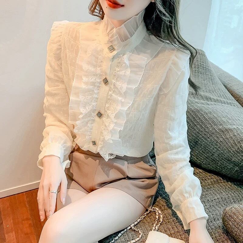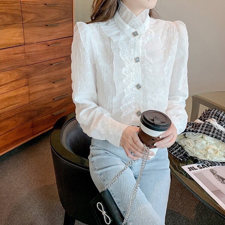 ブラウス レディース パール きれいめ 春 夏 秋 シャツブラウス シャツ 長袖トップス レース フリル 刺繍風 綿 大人 通勤 ゆったり 綿シャツ レディース かわいい 大人可愛い きれいめ シンプル おしゃれ パーティー イベント 公園 女子会 発表会 コンサート ホワイト S M L XL