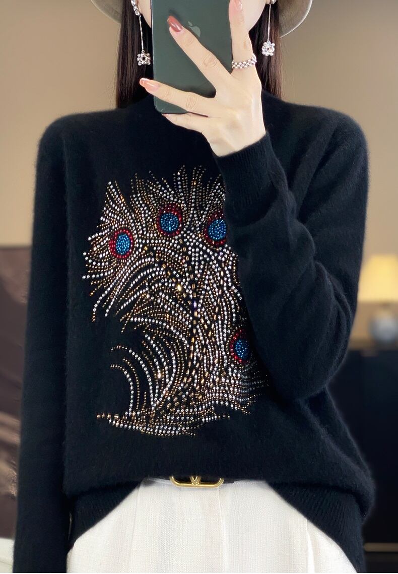ビジュー ニット セーター トップス レディース プルオーバー 秋 冬 普通丈トップス 裾イン 長袖 クルーネック 丸首 襟なし ストレート カラバリあり ブラック ホワイト ベージュ キャメル サイズ豊富 S M L XL 2XL 1枚で決まる 普段使い 日常使い 楽ちん 高見え 格上げ 定番 着回し デイリー 合わせやすい コーディネートしやすい 使いやすい モテ ベーシック シンプル ナチュラル カジュアル おしゃれ こなれ感 存在感 主役級 上質 好感度 30代 40代 休日 デート お出かけ