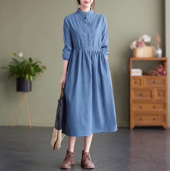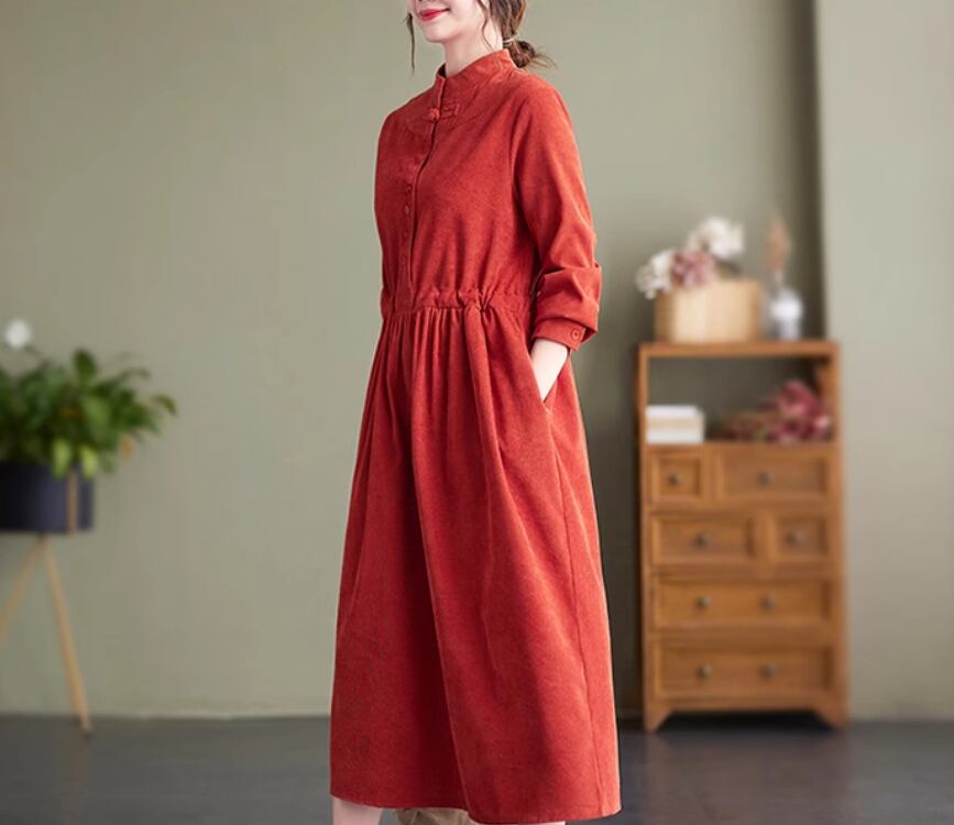 ワンピース レディース 個性的 春 秋 ミモレ丈 長袖 襟なし Aライン ウエストマーク カラバリあり レッド グリーン ピンク ブルー イエロー 無地 サイズ豊富 M L XL 2XL 外出 普段使い 日常使い 楽ちん 美脚 脚長 細見え 着痩せ 効果 若見え 高見え 定番 デイリー スタイルアップ モテ ベーシック シンプル ナチュラル カジュアル ルーズ ラフ おしゃれ こなれ感 存在感 主役級 大人可愛い 上質 爽やか 20代 30代 40代 お迎えコーデ 休日 デート お出かけ SNS 映え